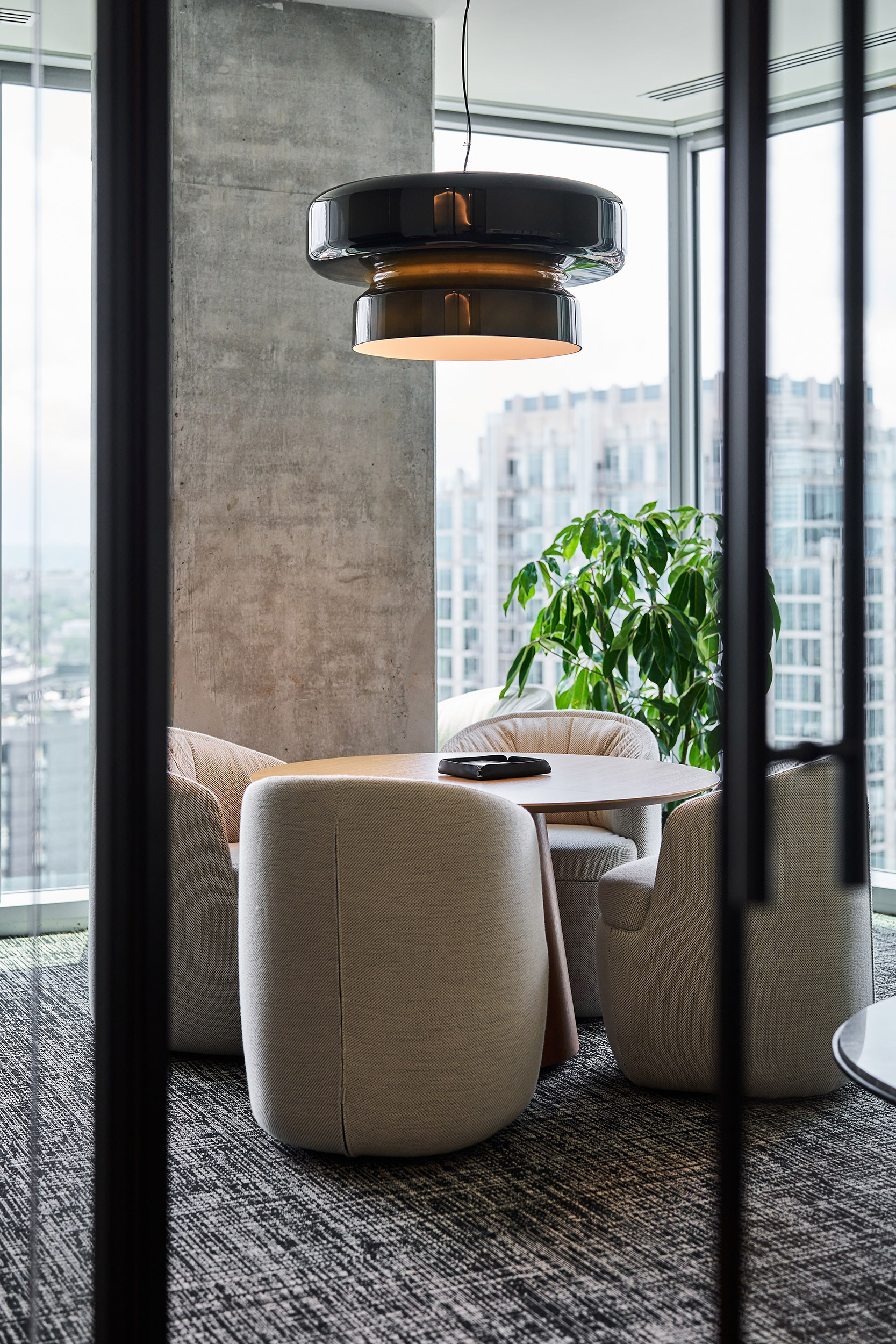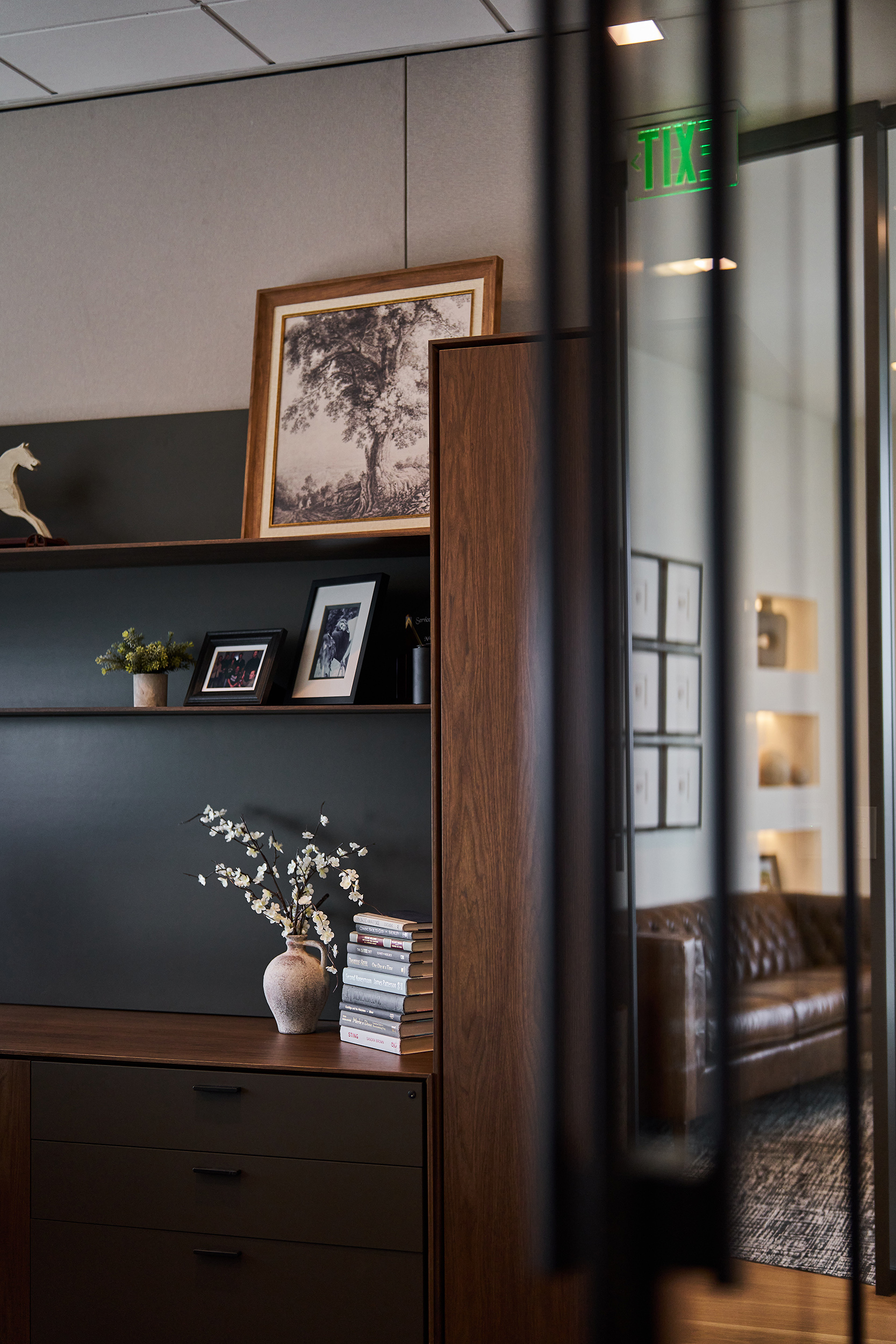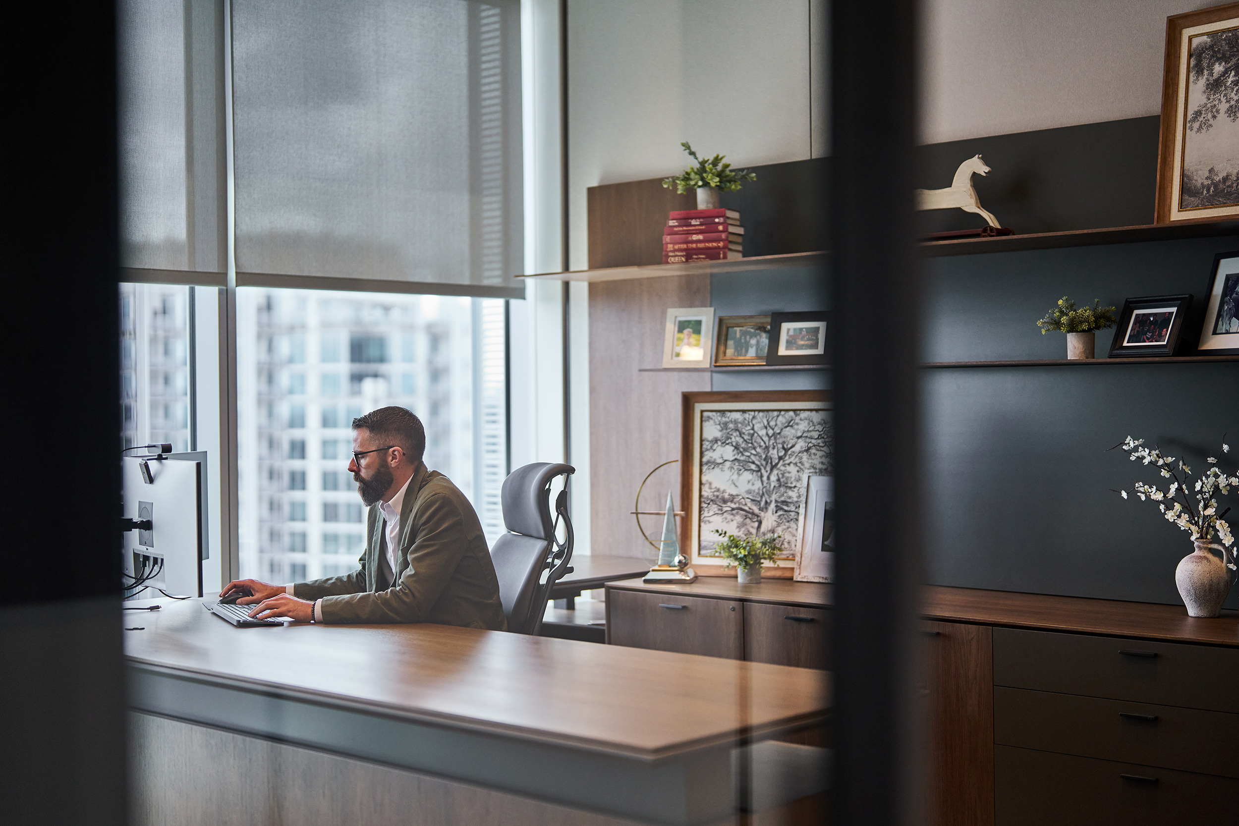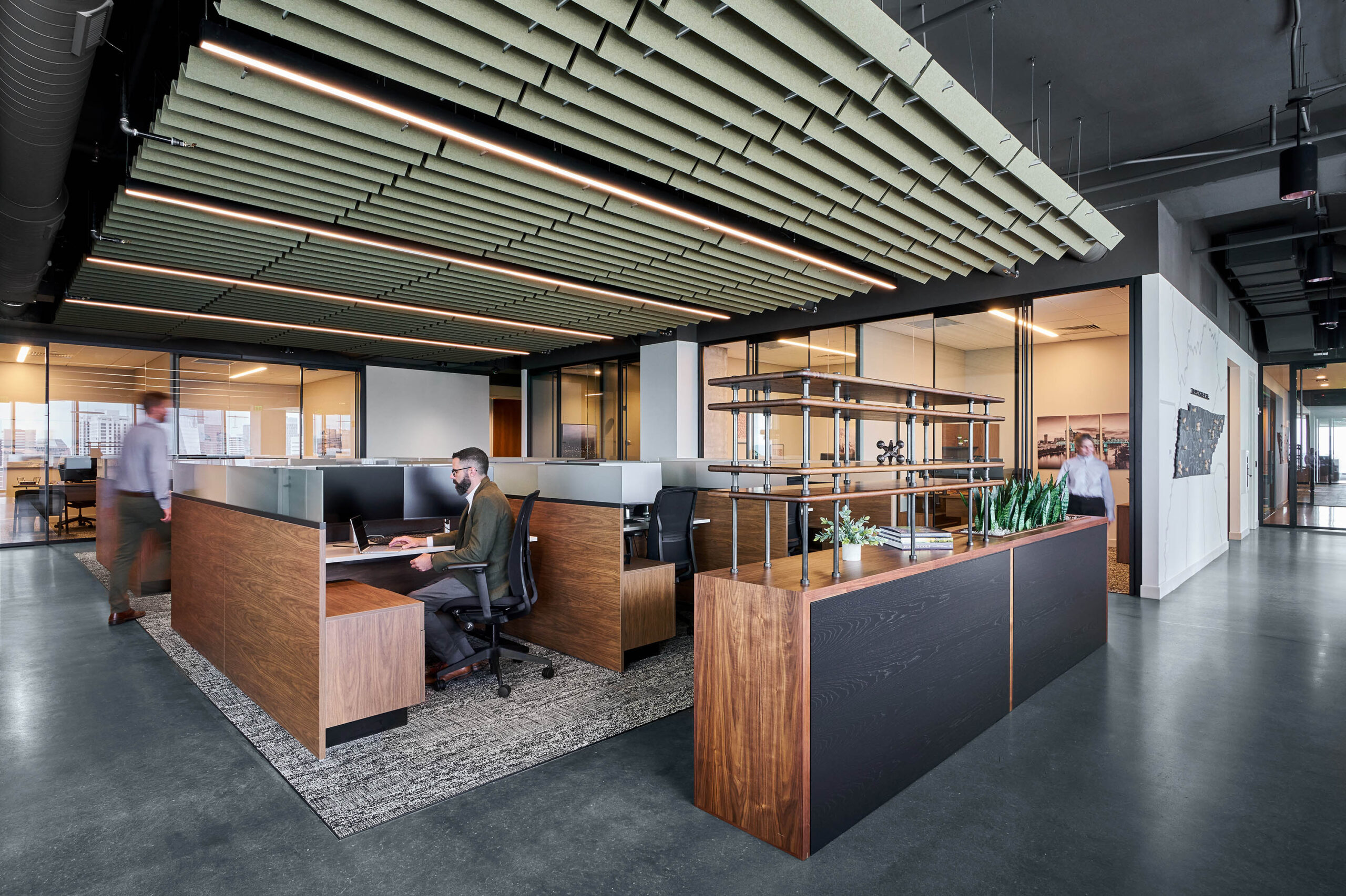 Various custom furniture solutions were developed to meet workstation, storage, and conference table criteria. Architectural glass walls were also used to maximize daylighting and interior views.